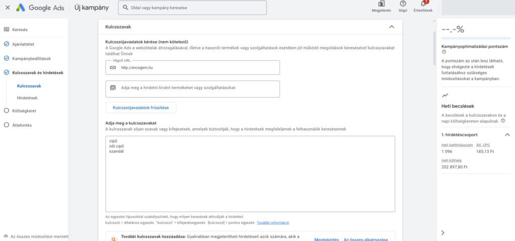 Megadhatod a weboldalad címét, és a Google annak tartalma alapján ajánl majd számodra releváns kulcsszavakat. Ha ezt a lehetőséget választod, mindig nézd át alaposan a listát, hogy ne költs esetleg felesleges kattintásokra!